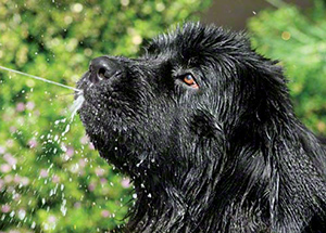 For dogs that spend time outdoors, the same size water bowl should be adequate for outside, though some people like to use a bucket, especially if they have multiple dogs. Look for a bucket with snag proof handle attachment for extra safety and durability. Don’t assume, though, that you can fill a large bowl or bucket with water and ignore it for a few days. Newfs are very messy drinkers and prolific drool producers, and water bowls quickly get murky, crumb-filled, and “syrupy” from drool. Outside water bowls will also attract birds or other wildlife, so they will need to be cleaned and the water changed regularly. Additional suggestions: 10" heated bowl for winter, Lixit Dog Waterer (attaches to high water faucet or elevated garden hose, dogs lick to activate flow).