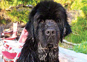 Newfs need a lot of grooming, plain and simple. If you don’t want to be bothered grooming your dog or don’t want to spend the money taking her to a professional groomer, a Newfoundland is not for you. Even if you plan on using a professional groomer, you’ll need to have a few basic grooming tools at home. Newf coats need regular, frequent attention, so be prepared to do some brushing daily or almost daily, to clean ears and teeth regularly, to trim or grind nails every week or so, and to address any matting or other coat/skin issues that arise. To accomplish all this, you’ll need some tools, though there’s no need to rush out and buy them all at once. Brushes (a pin brush and a slicker brush, appropriately sized) and a comb (a handy variety has fine teeth on one half and medium on the other) are essential, and an undercoat rake is one of the best ways to make sure you’re combing out your dog’s coat all the way down to the skin. A pair of straight-edge grooming shears can be helpful for trimming hair around your dog’s footpads (curved shears do an even better job here), and you’ll need something to deal with your dog’s nails. Heavy nail clippers are needed for thick Newfie nails, or you may wish to consider a nail grinder (many people use Dremel rotary grinders with sanding bands); talking with a vet, groomer, or experienced Newf owner is highly recommended if you’re not comfortable with nail trimming.
